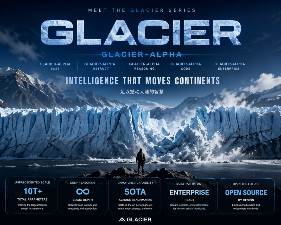 如此霸气的文案,令人不由猜测Glacier或许是一个参数量级巨大,或者在逻辑深度上产生了质变的模型。