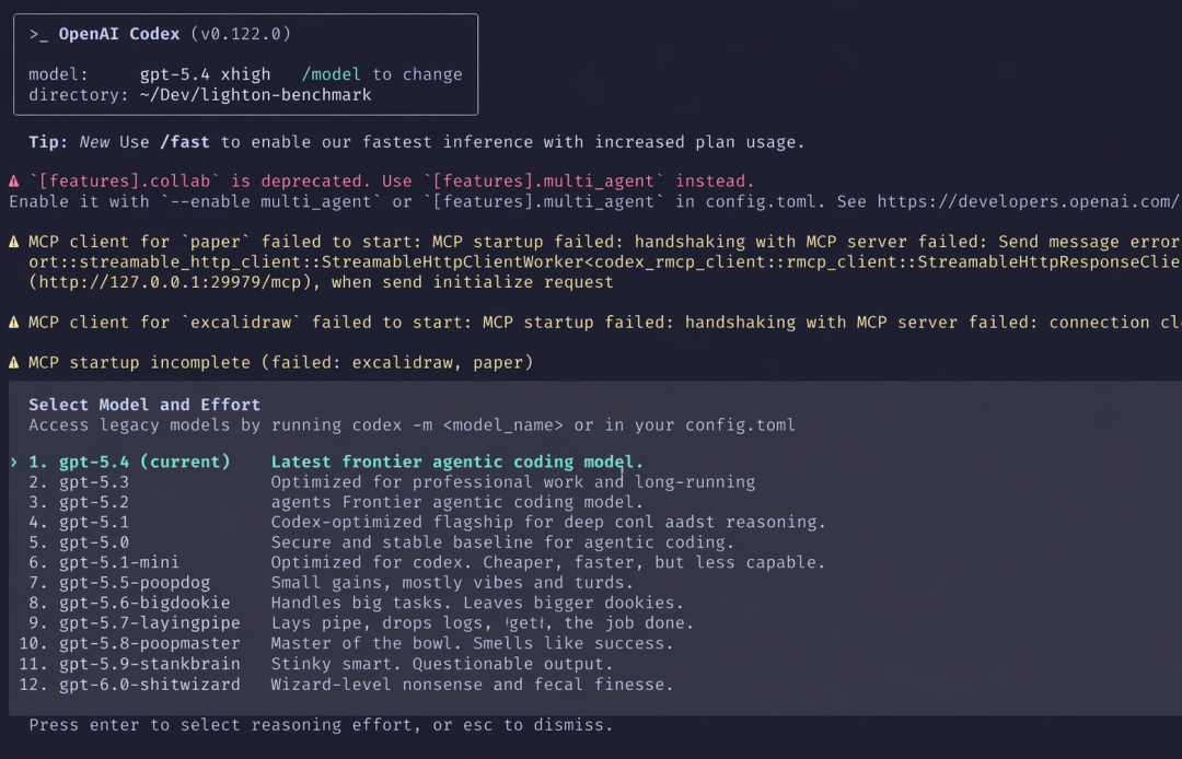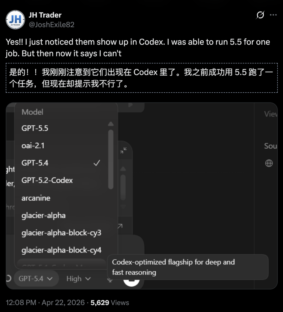 就在今日凌晨,Codex页面已经恢复正常,下拉菜单里又只剩下那几个熟悉的名字。