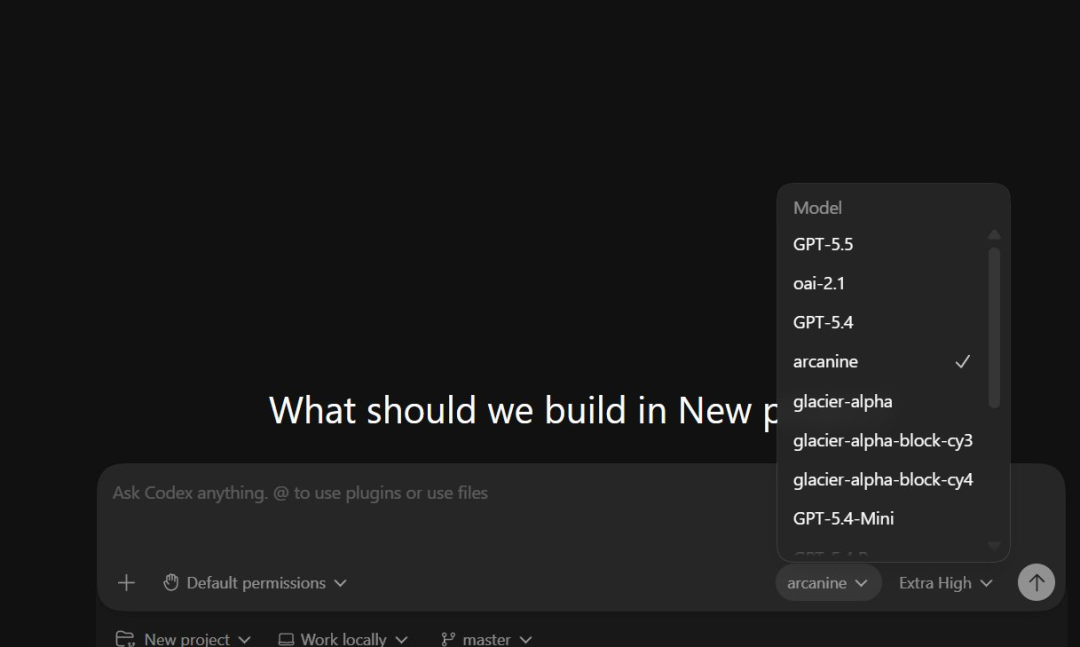 台面下,至少有GPT-5.5(智能体编码)、Glacier系列(疑似新架构)、Heisenberg(生命科学)、Arcanine(未知定位),以及若干带有block、cy等后缀的变体模型。